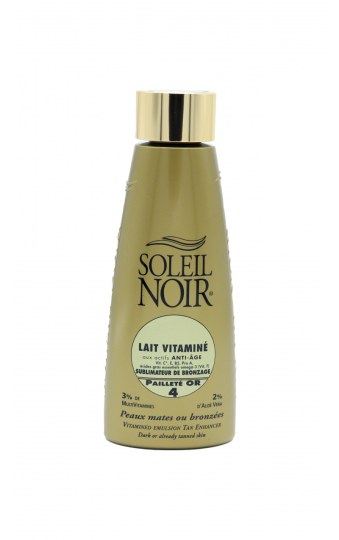 Soleil Noir a créé pour vous une ligne de soins dotée d’une formulation innovante pour un produit d’exception. Ce lait n’est pas une protection solaire, mais il prépare votre peau, grâce à sa formule riche en vitamines aux actifs anti-âge et à sa forte concentration en huiles nobles, la présence de paillettes or sublime votre bronzage.