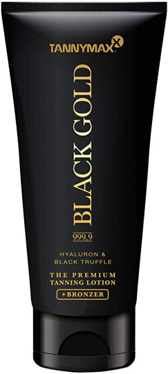 BLACK GOLD est la meilleure lotion bronzante que Tannymaxx n’ait jamais développée. Elle stimule aussi bien le processus naturel de bronzage de la peau exposée aux rayons UV que sa capacité naturelle à se régénérer. Son but est non seulement d‘obtenir un bronzage naturellement beau mais aussi de préserver la fonction protectrice de votre peau. Des ingrédients doux et d‘une grande pureté comme la truffe noire, l’acide hyaluronique et l’avocat améliorent la qualité de la peau. La truffe noire étant composée en acides aminés elle permet d’agir comme un « botox naturel »en activant la formation de fibres de collagène, en régénérant nos cellules et en renforçant son élasticité. Elle prévient l‘irritation de la peau et en favorisent l‘hydratation. Le combiné de l‘acide hyaluronique et de la truffe noire permet d‘obtenir des valeurs de régénération et effets anti-âge optimaux. TANNYMAXX BLACK GOLD offre un bronzage doré et profond, une peau souple et nourrie en profondeur. Convient pour toutes les parties du corps et tous les types de peau. Cette lotion est rapidement absorbé, ne graisse pas et a un délicat parfum floral.