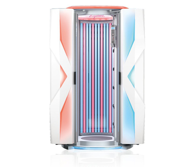 Le Sunrise 7200 avec son unique jeu de lumière à LED et ses lignes excitantes au design typique d'Ergoline attire le regard au premier coup d'oeil. Le nouveau système de porte coulissante permet un accès facile et offre une vue dégagée sur l'intérieur très éclairé. Le tunnel de tir à ciel ouvert donne à vos clients un sentiment de détente en plein air lors de leur séance.