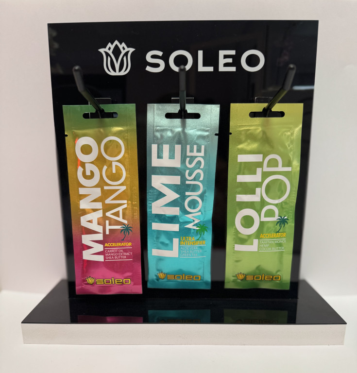 Mettez en évidence vos unidoses de cosmétiques SOLEO actuelles avec ce présentoir qui attire l'attention.